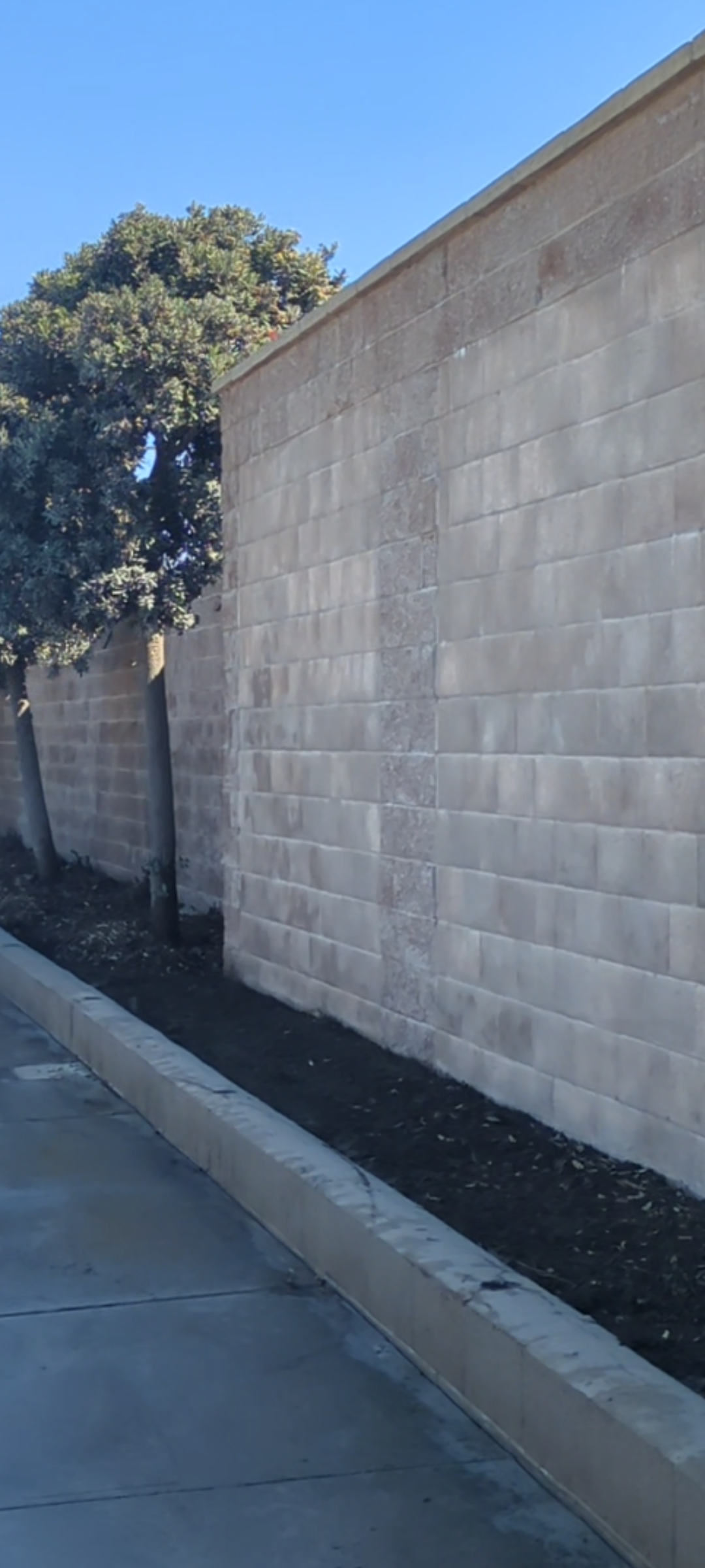 Clean 400 yard by 10 ft tall block wall in preparation for city to have mural painted.