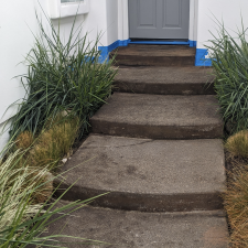 Pressure wash driveway and steps up to house. Apply light gray colored paint stain to the concrete and seal the concrete in Monterey California.